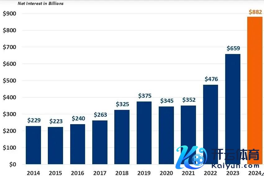 把柄好意思国财政部11月20日公布的数据,2024年好意思国联邦政府仅用以偿还好意思债利息的开销就达到了8820亿好意思元。相较2023年6590亿好意思元的利息开销,2024年好意思债利息开销增长率达33.8%。
