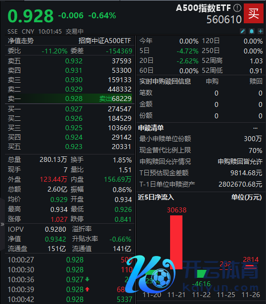 Wind数据自大,11月26日在市集集体转移之下,A500指数ETF(560610)获2841万元,适度收盘,该ETF最新限制141.52亿元。