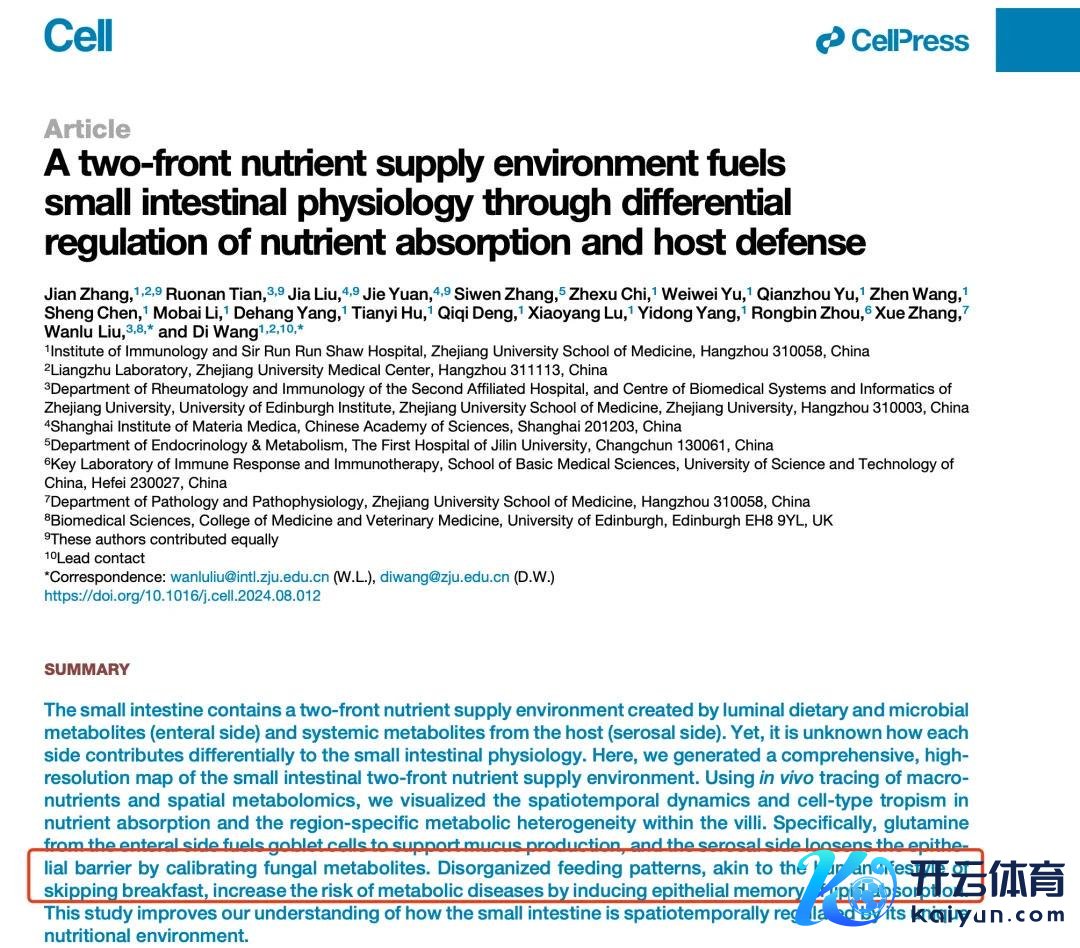 日前,浙江大学医学院附庸邵逸夫病院、浙江大学爱丁堡大学邻接学院、中国科学院上海药物相干所的相干团队,在顶尖学术期刊《细胞》(Cell)上合营发表一篇论文标明,不吃早餐的这种饮食风气会蜕变小肠对养分物资的继承神志,从而会加多代谢性疾病的风险。