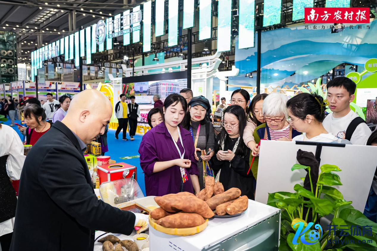 甘薯是汕尾一张“隆隆金”的农业产业柬帖。在陆丰市聚润生态农业科技有限公司的摊位前,现场试吃氛围很是热烈,烤熟的榴莲蜜薯香气扑鼻,一上桌就被“秒空”。展会线下垂询的火爆,也带动了该公司线上小法式粉丝私域流量的加多。