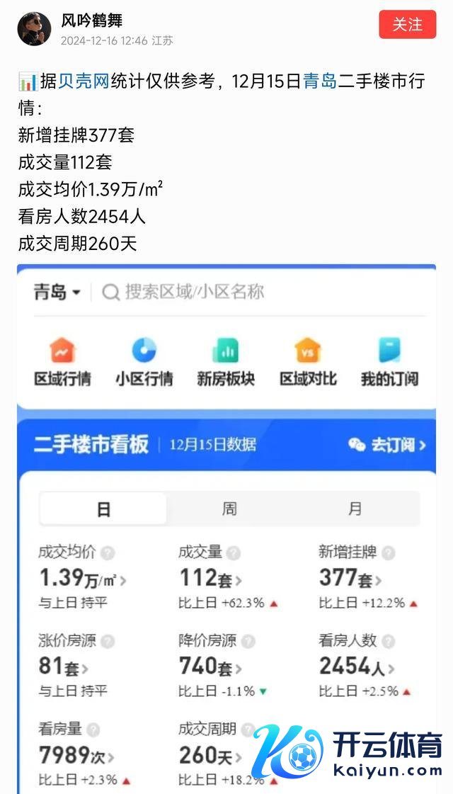 楼市大风浪开云体育,青岛楼市太燃了,二手房单日成交112套,环比高潮62.3%,开释了什么信号?