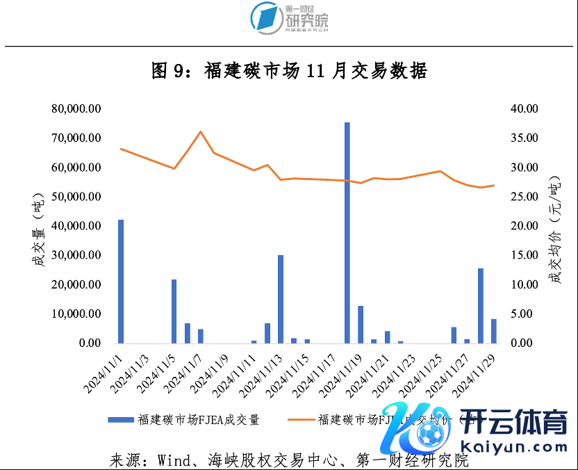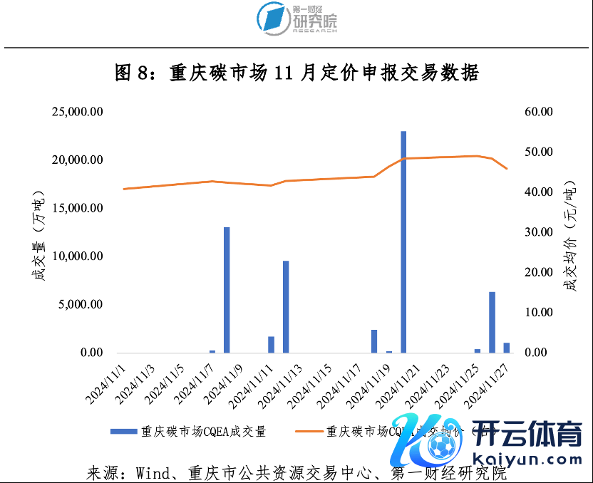 在地点碳市蚁集,11月成交量最大的为湖北碳市集,交游量达到156.08万吨。碳价涨幅最大的为福建碳市集,比较10月成交均价高涨约43%。