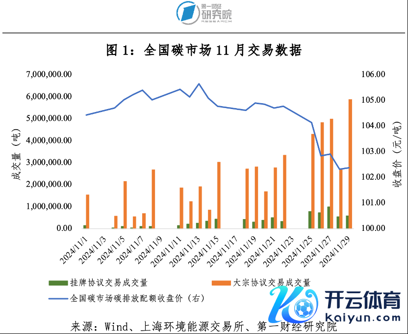 11月,CEA价钱再改进高,最高达到106.02元/吨,较10月最高价高涨1.36%。价钱和成交量的高涨反馈出供不应求的情况,CEA供应较为垂危,而电力行业的配额需求大幅增多。由于践约期的周边,一大部分企业不绝进行配额的购买,在一定进度上也推高了碳价。