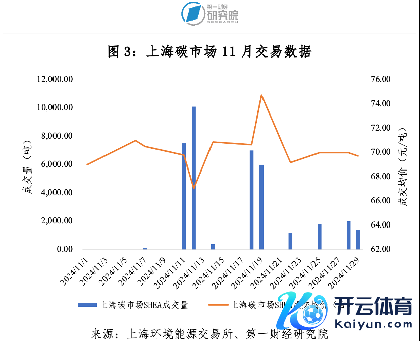 11月上海碳市集碳排放配额(SHEA)成交量3.75万吨,成交额262.58万元,成交均价70.01元/吨。11月临了一个交游日成交均价69.71元/吨,较10月临了一个交游日成交均价69.00元/吨下落1.03%。抑制11月30日,SHEA累计成交量5483.37万吨(挂牌交游2435.15万吨,条约转让3048.22万吨),累计成交额17.05亿元。