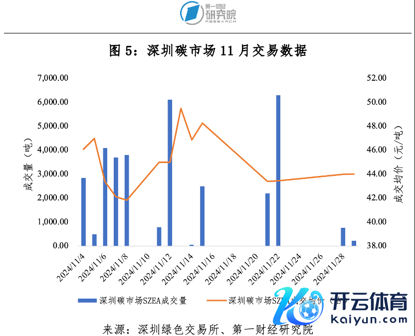 11月深圳碳市集碳排放配额(SZEA)成交量3.39万吨,成交额149.58万元。时辰,最高价49.50元/吨,最廉价40.00元/吨,成交均价44.09元/吨。11月临了一个交游日收盘价44.03元/吨,较10月临了一个交游日收盘价50.90元/吨下落13.50%。抑制11月30日,SZEA累计成交量7715.69万吨,累计成交额20.49亿元。