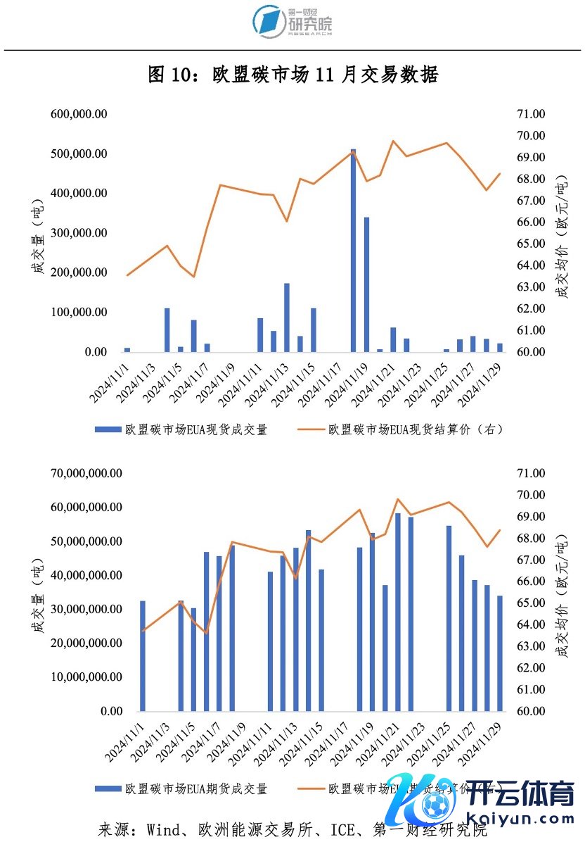 EUA价钱在通顺下落两个月后,于11月出现回升,价钱月底时达到70欧元/吨把握。固然市集供应增多,但配额需求一样强健,从而推高欧盟碳价。