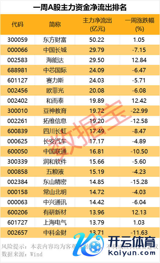 主力资金本周出逃前期强势股开yun体育网主力资金本周出逃前期强势股