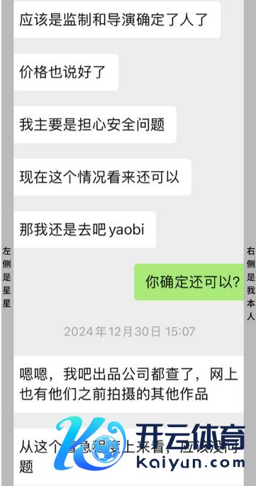 王星女友发布的聊天纪录,对话框右侧为王星,左侧为自称泰国公司演员统筹的东说念主
