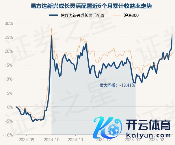 本站音问,2月21日,易方达新兴成长纯真成立最新单元净值为4.391元,累计净值为4.391元体育游戏app平台,较前一往以前高潮4.35%。历史数据披露该基金近1个月高潮10.35%,近3个月高潮9.64%,近6个月高潮25.71%,近1年高潮24.67%。该基金近6个月的累计收益率走势如下图: