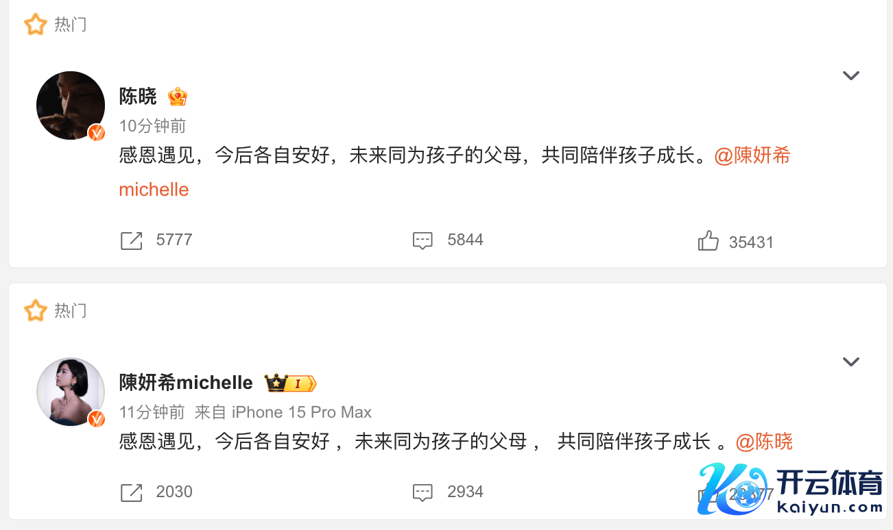 2月18日, 陈晓陈妍希官宣仳离:“感德碰见,今后各自安好,畴前同为孩子的父母开云体育,共同追随孩子成长。”